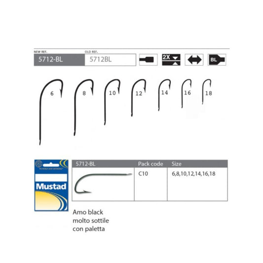 Mustad Bloodworm Light Bait 5712-BL Taglia 18 10Pezzi Colore Black Ami per la Pesca