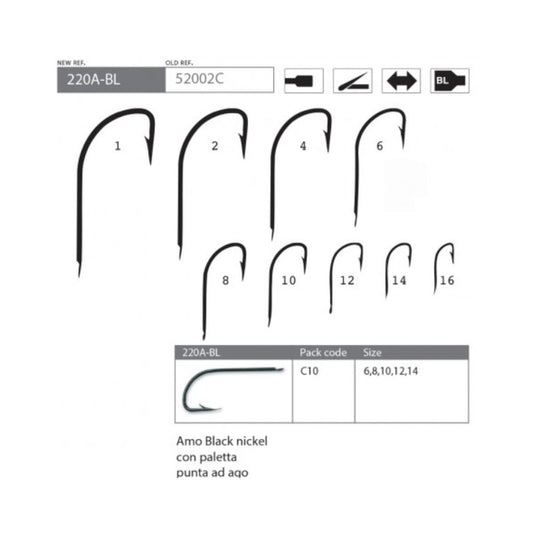 Mustad Crystal 220A-BL Taglia 10 10Pezzi Colore Black Ami per la Pesca