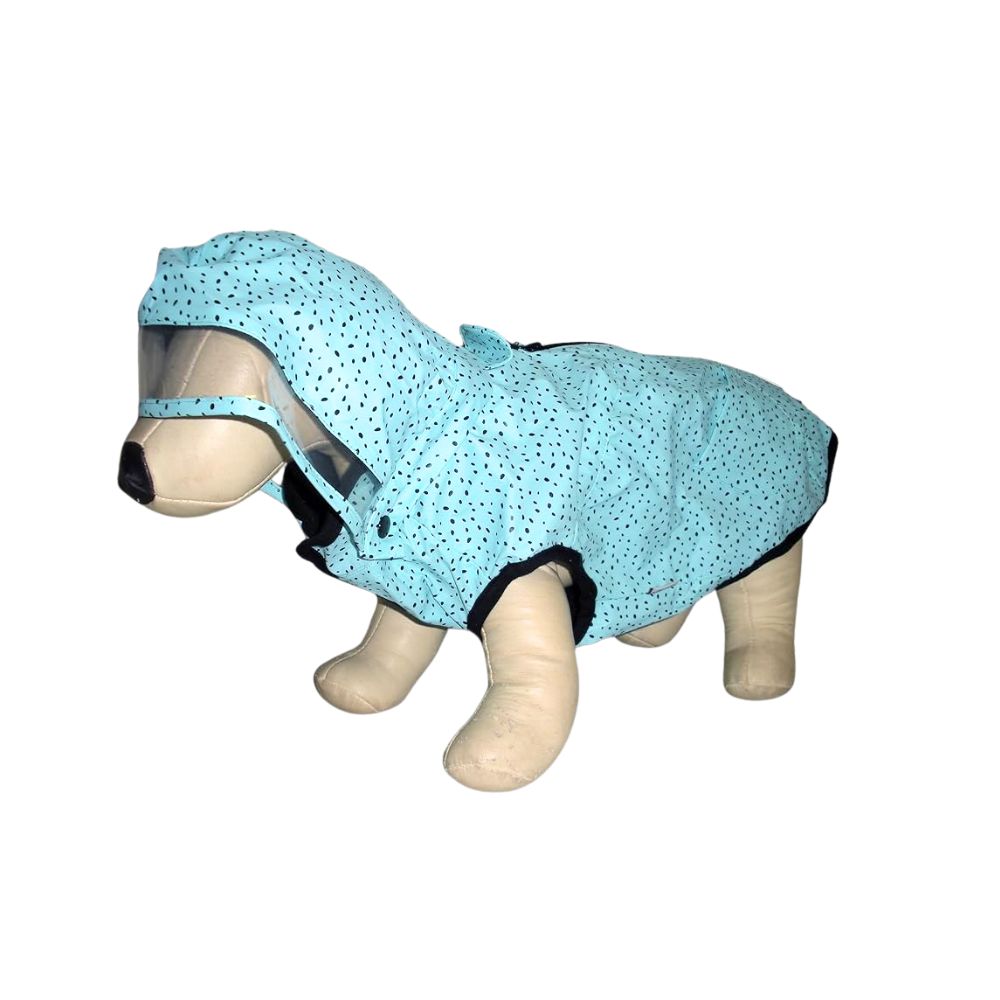 Impermeabile con effetto spalmato, dotato di cappuccio staccabile con banda trasparente che offre al cane una migliore vestibilità. Patch catarifrangente a forma di cuore.