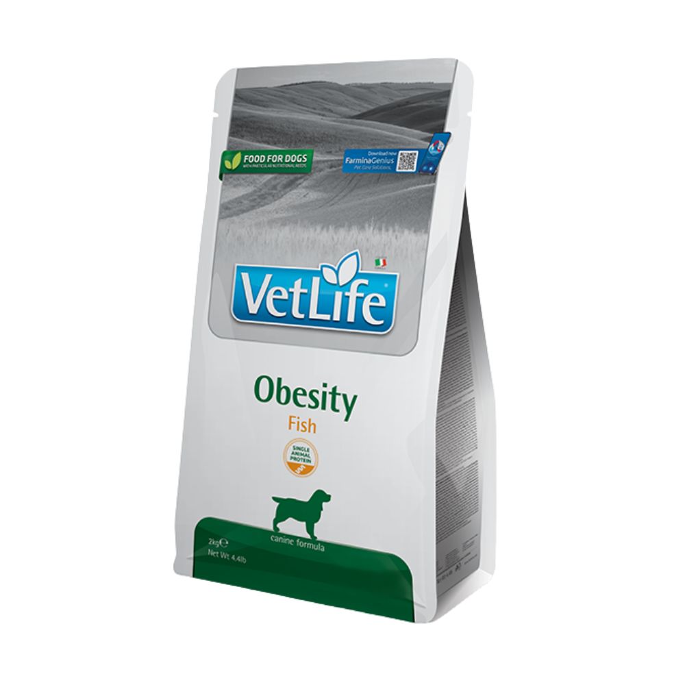 Farmina Vet Life Obesity Fish è un alimento dietetico completo, per cani, per la riduzione dell’eccesso di peso corporeo.