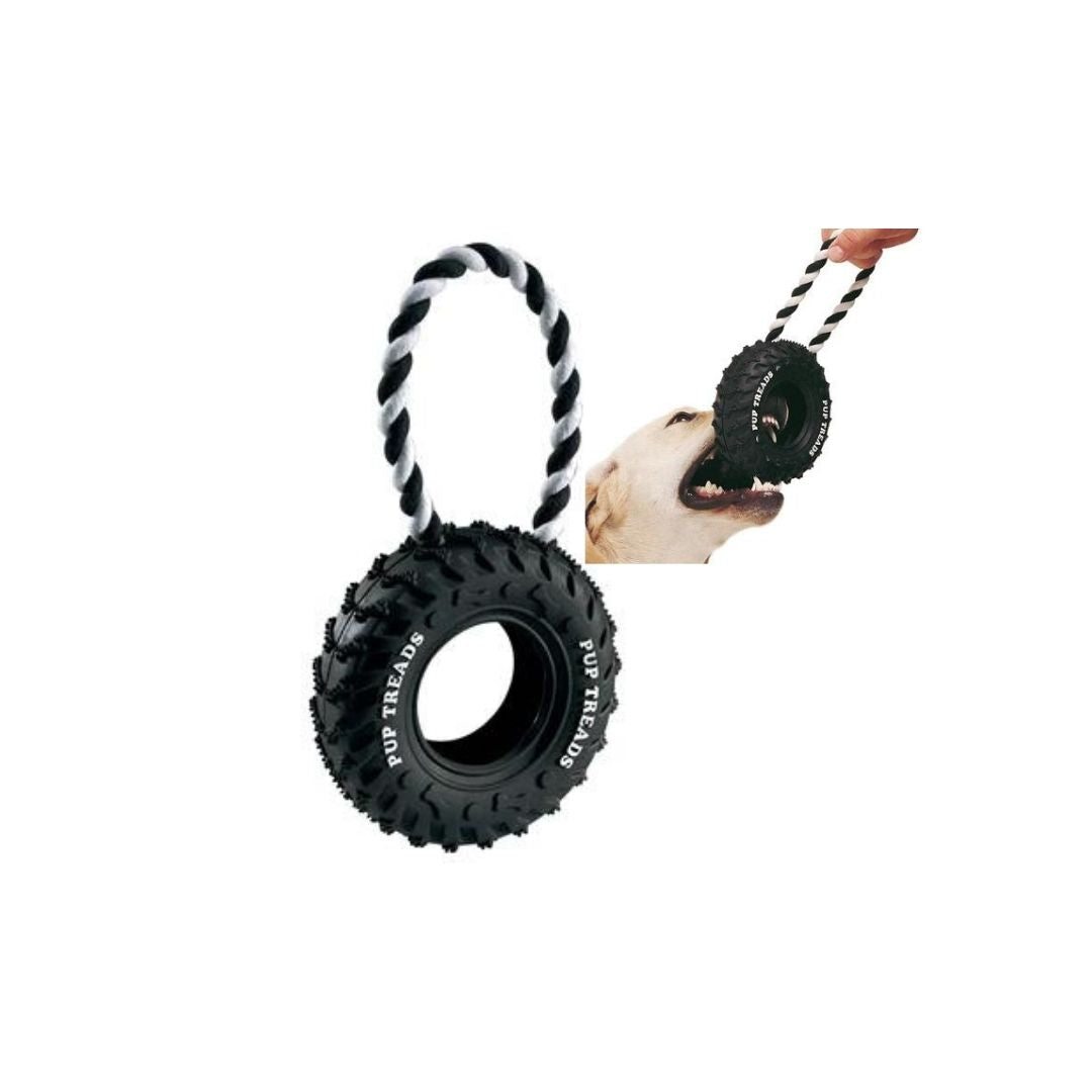 Il gioco è composto da un robusto cordoncino in cotone intrecciato, che potrete tenere saldamente mentre il cane azzanna il solido pneumatico in gomma. Molto maneggevole, infatti, questo antistress si afferra facilmente, così voi potrete giocare a "tira e molla" con il vostro quattrozampe: il divertimento è assicurato!