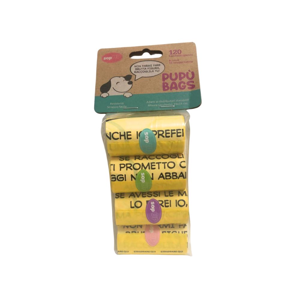 Pupù Bags Sacchetti Igienici Motivazionali Giallo 8 Rotoli per Cani