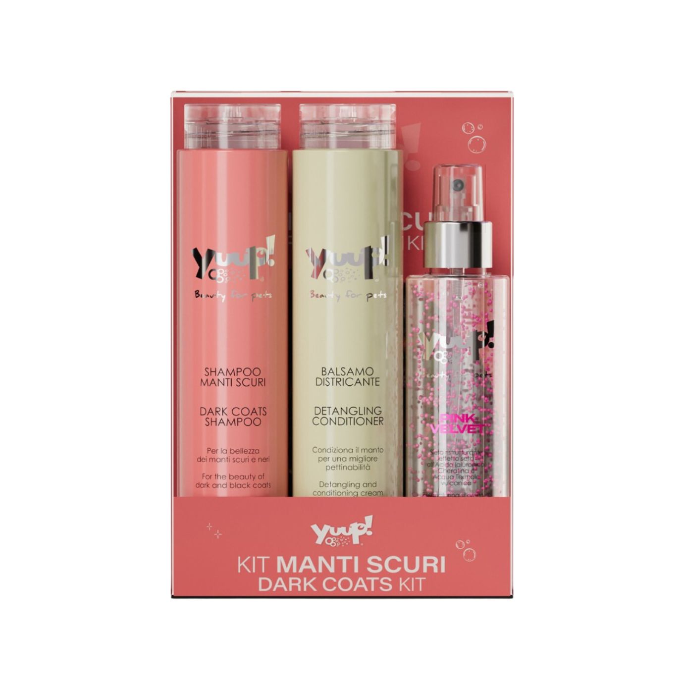 Kit di prodotti per cane e gatto specifico per la cura e la bellezza dei manti a pelo scuro